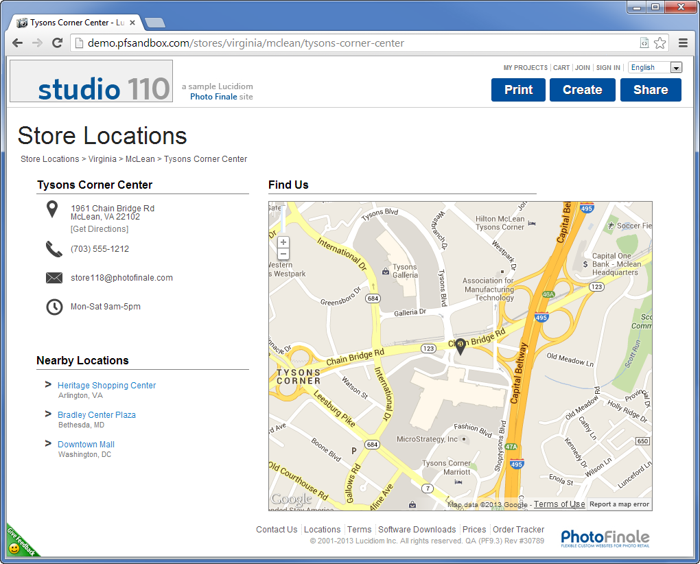 Individual pages for each store location, which each include: